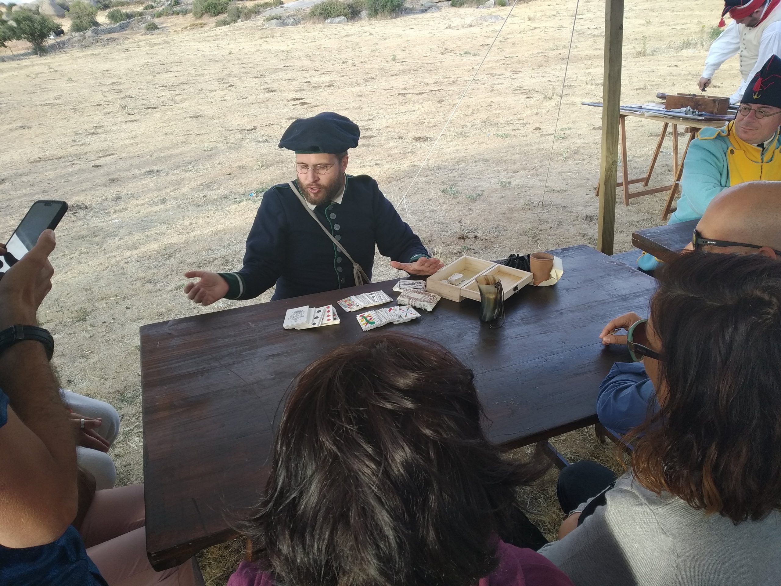 En cuanto a los talleres, los asistentes pudieron conocer más sobre los juegos de cartas de la época (a cargo de Iagoba, de la asociación Salamanca 1812), los regimientos de extranjeros al servicio del Rey de España (a cargo de Jose Manuel, de la asociación Blas de Lezo), el vestuario y función de la mujer durante la guerra (por Gema, de Salamanca 1812), sobre cómo tallar y escribir con pluma de ave, y sobre la figura del baratero en el ejército español (por Alejandro y Carlos, ambos de nuestra asociación). Estas charlas fueron un éxito, asistiendo a ellas más gente de la que vive en el pueblo, estimando el ayuntamiento que tres de cada cuatro visitantes eran turistas. No menos importante fue el taller infantil, con el que nuestras compañeras Oti y Melissa deleitaron a los más pequeños.